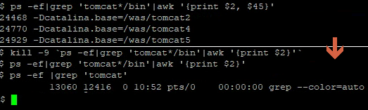 kill -9 `ps -ef|grep 'tomcat*/bin'|awk '{print $2}'`