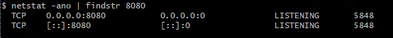 - nestat 명령이 실행되면서 출력되는 정보의 마지막에 있는 숫자가 PID (5848)