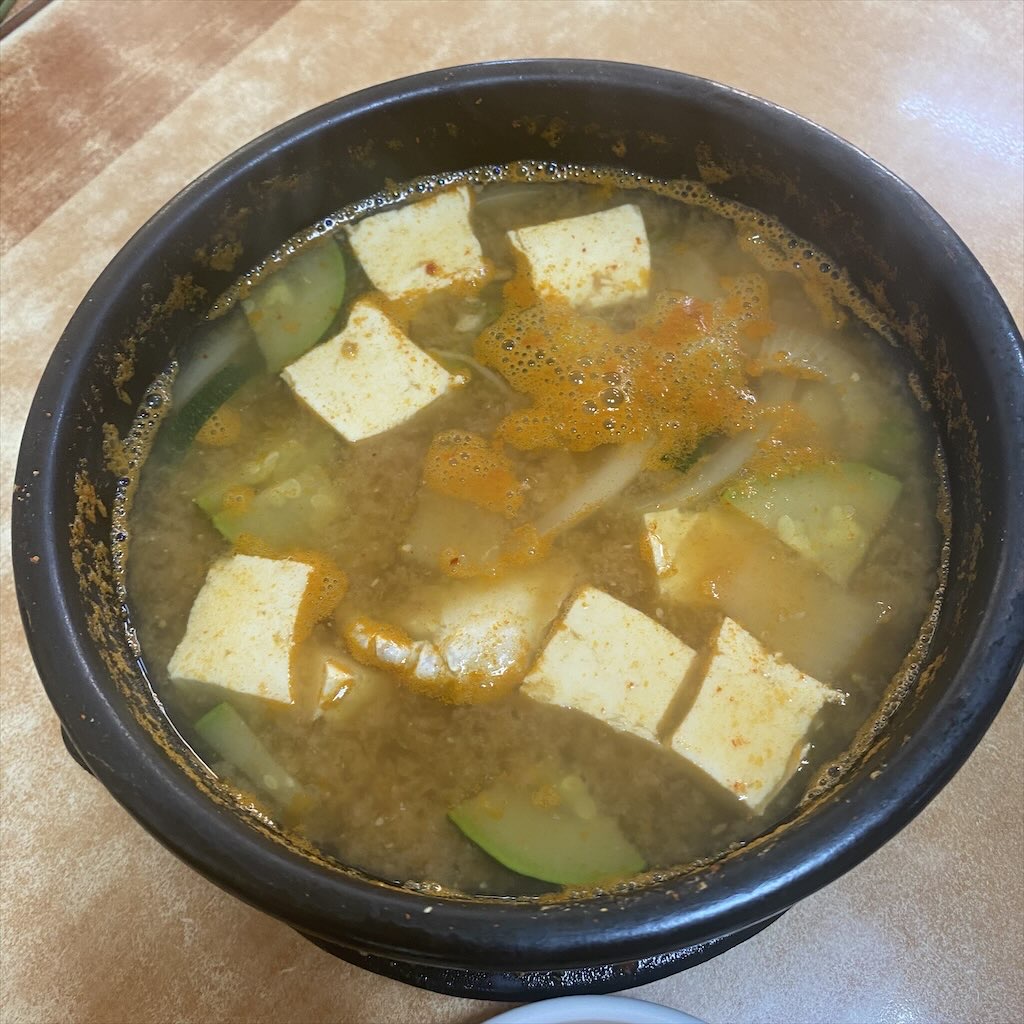 된장찌개에 쌈채소까지 푸짐하게 주시네요.
