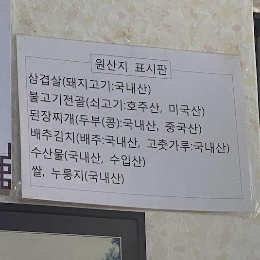 소고기, 두부 빼곤 다 국산을 사용하시네요