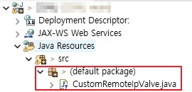 - 먼저 프로젝트에 CustomRemoteIpValve.java 파일을 패키지없이 생성하고 아래 코드를 입력합니다.