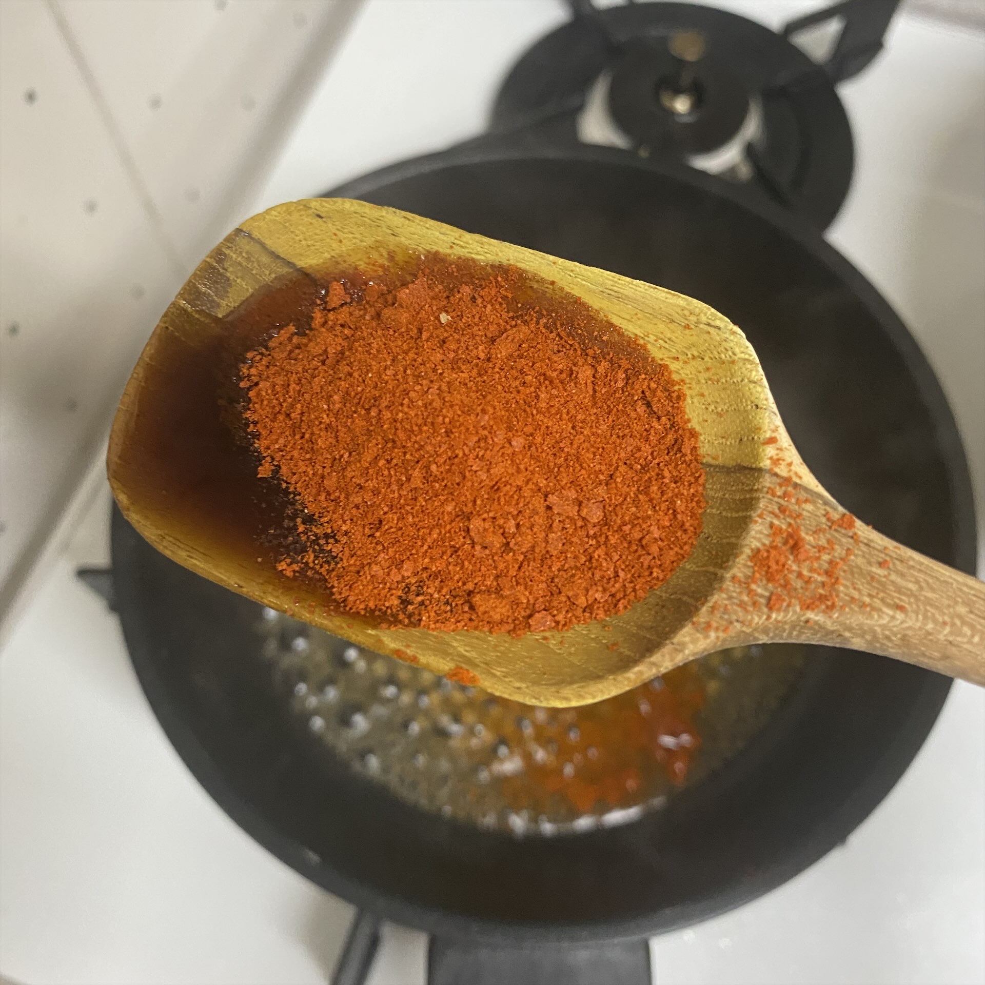 고추가루를 넣고 잘 섞어 소스를 만듭니다.