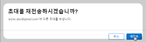 - 초대 재전송을 누르면 아래와 같은 팝업이 뜨고 재전송을 누르면 해당 테스터에게 초대 메일이 날라간다.