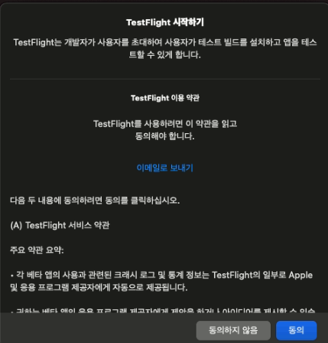 - TestFlight 사용하려면 약관에 동의를 해야한다