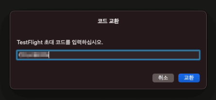 - 테스트 초대코드를 테스트 플라이트 앱으로 돌아와서 입력해주면 앱을 다운로드받을 수 있다.