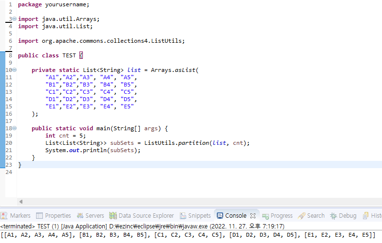 - Apache Commons Collections의 최신 릴리스에 List 분할 지원이 추가되었다.