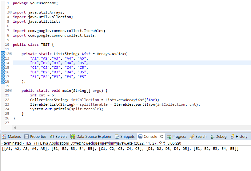 Iterables.partition( 대상 리스트, 분할할 크기 );